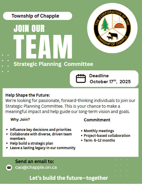 Just send an email expressing your interest to: cao@chapple.on.ca